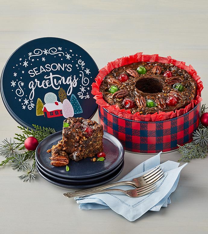 At Harry David we take fruitcake delivery very seriously. At harry david we take fruitcake delivery very seriously. Traditional fruitcake 2 lb decorative tin 725 in dia x 275 in h 184 cm x 69 cm net weight.
